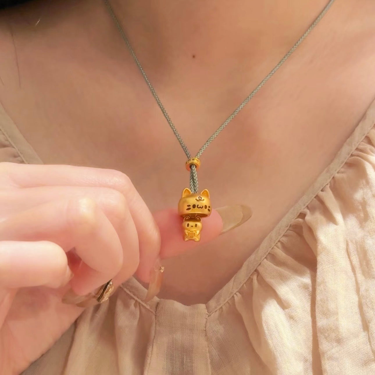 ダイヤモンド付きかわいい猫のチャーム、招福ネコのネックレス